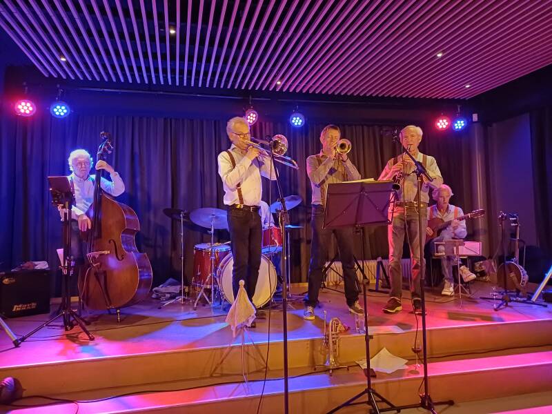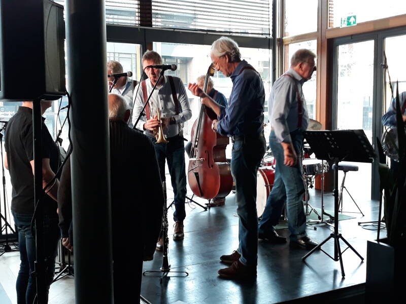 Nu over de muziek, daar kwamen we natuurlijk voor. Deze oude stijl dixieland was voor een aantal
